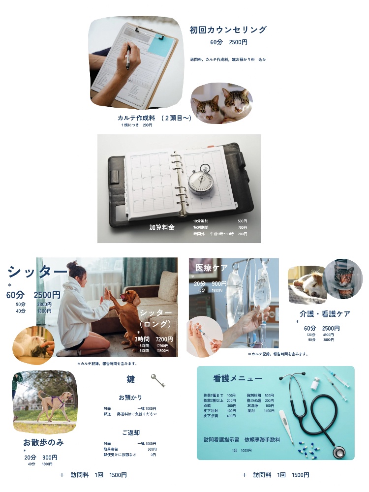 2500円 *訪問料,カルテ作成料 込み/鍵預かり無料